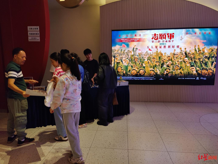 10月1日,电影《志愿军:浴血和平》“万人见证胜利时刻”主题观影活动在全国多地进行。以一场跨越山河的大银幕同频观影,共同回望了抗美援朝战场的胜利时刻,向用生命捍卫和平的志愿军将士致敬。成都不少观众在成都百丽宫影城(环贸ICD店)参加主题观影活动,看完电影后,有观众表示,影片水准不错,超乎预期,文戏部分也很精彩,传递了深厚的家国情怀,适合在国庆佳节观赏。