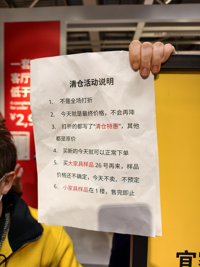 新京报贝壳财经讯(记者俞金旻)1月15日至2月1日,作为宜家中国宣布即将关闭的7家门店之一,宜家上海宝山商场开始“清仓特惠”,800余款小件家具折扣最低至三折。