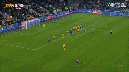 第43分钟,纽卡左侧角球机会,皮球主罚到后点,佳夫头球被挡住了,随后若泽·萨将球抱住↓