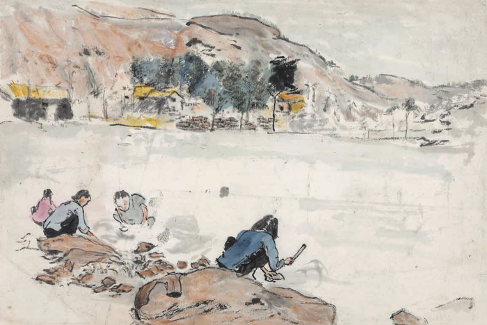 蒋兆和 《河边写生》 水墨设色 纸本 22.7cm×34cm 1963年