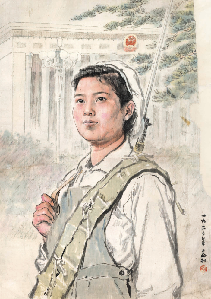 蒋兆和 《女民兵》 水墨设色 纸本 85.9cm×60.7cm 1960年