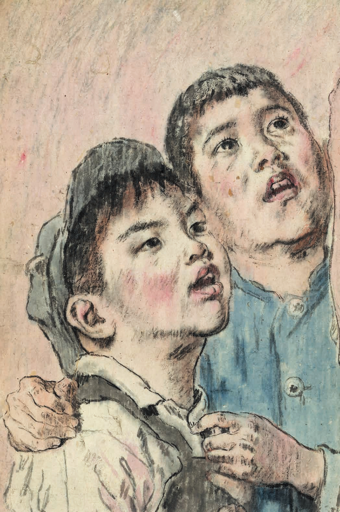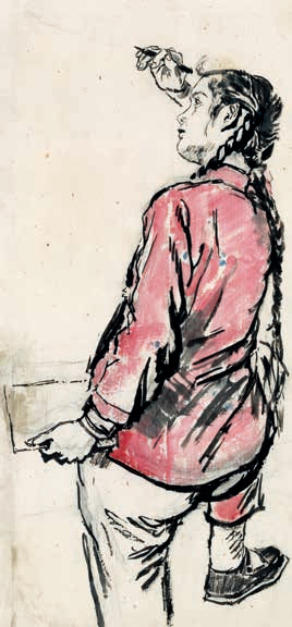 蒋兆和 《〈沿着雷锋叔叔成长的道路前进〉画稿》 水墨设色 纸本 67.7cm×46.6cm 1964年