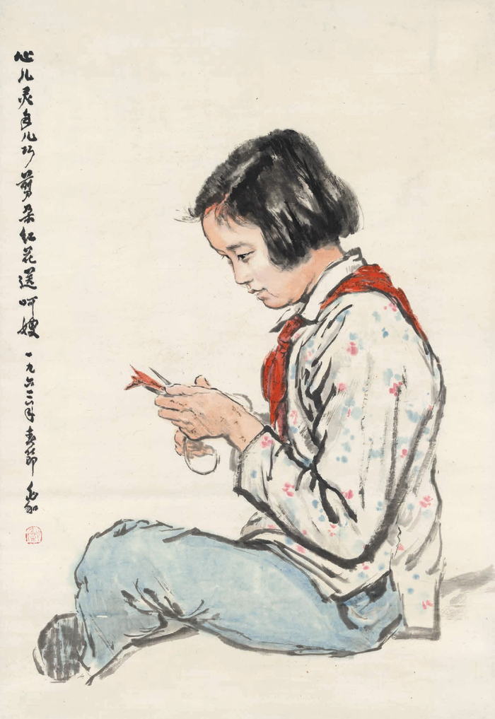 蒋兆和 《心儿灵手儿巧》 水墨设色 纸本 80.8cm×55.5cm 1962年