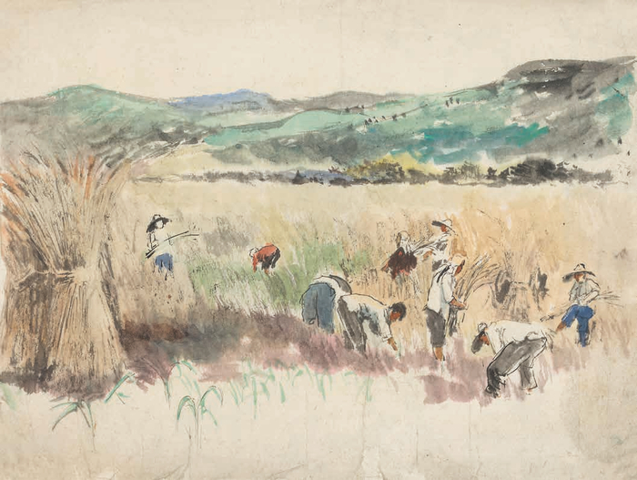 蒋兆和 《农田写生》 水墨设色 纸本 27cm×35cm 1958年