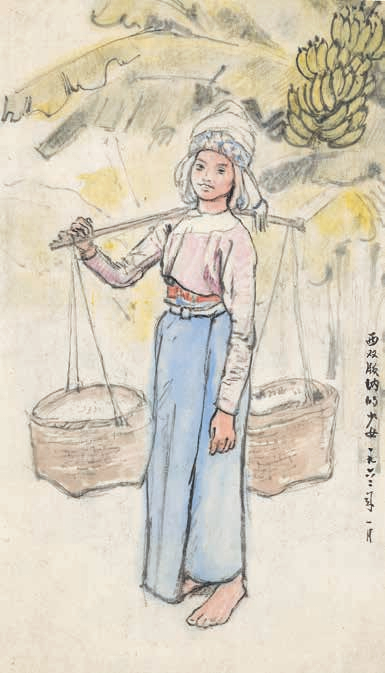 蒋兆和 《西双版纳少女速写》 水墨设色 纸本 36cm×20.9cm 1962年