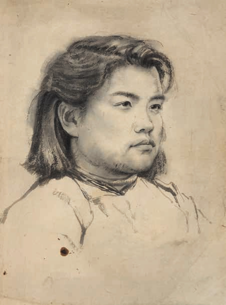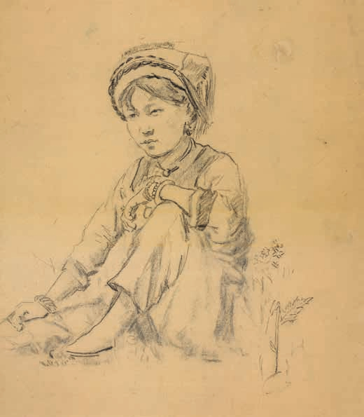 蒋兆和 《苗族少女速写》 铅笔 纸本 29.9cm×26.2cm 1962年