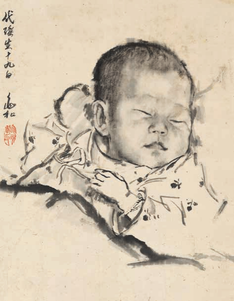 蒋兆和 《抱婴儿的妇女速写》 水墨 纸本 23.4cm×17.7cm 20世纪50至60年代