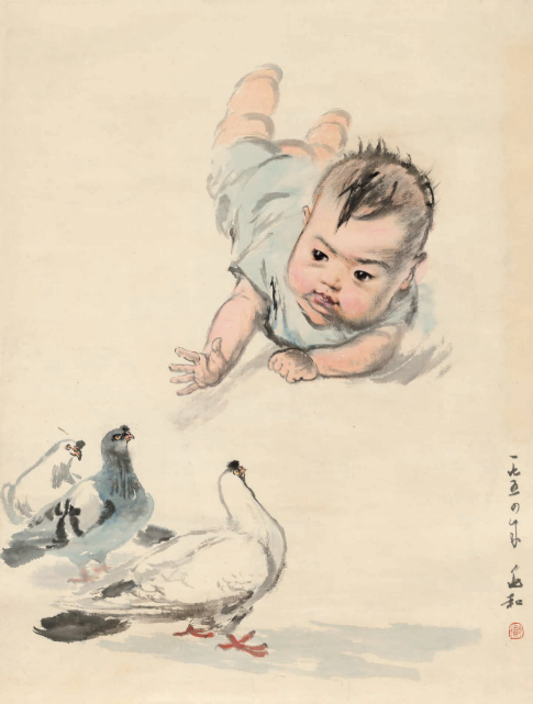 蒋兆和 《小孩与鸽子》 水墨设色 纸本 87.5cm×66cm 1954年