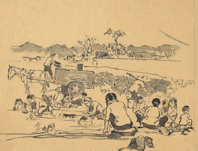 蒋兆和 《塞上写生·南水泉》 水墨 纸本 18.6cm×24.4cm 1958年