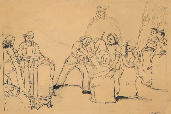 蒋兆和 《〈友谊深厚〉画稿》 水墨设色 纸本 38cm×28.8cm 1956年