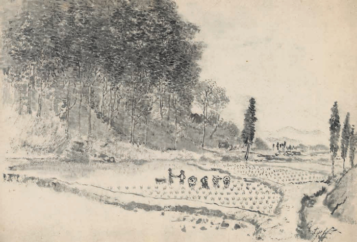 蒋兆和 《插秧写生》 水墨 纸本 24.7cm×36.3cm 1960年