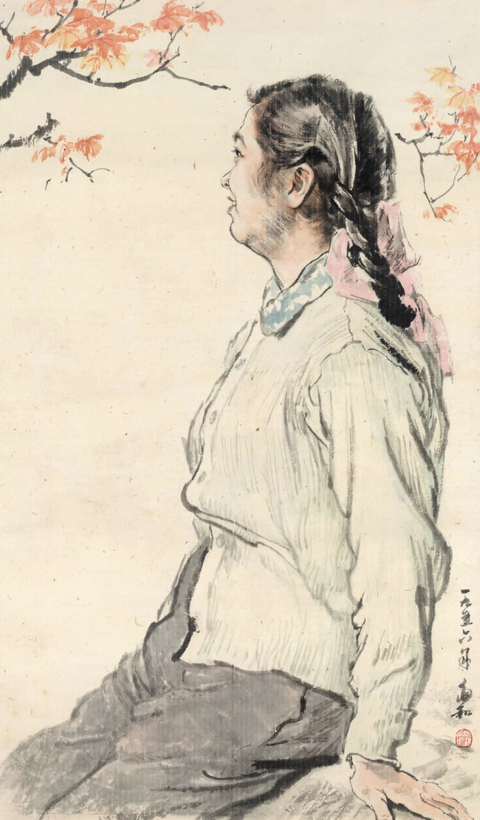 蒋兆和 《女青年》 水墨设色 纸本 90.8cm×53.2cm 1956年