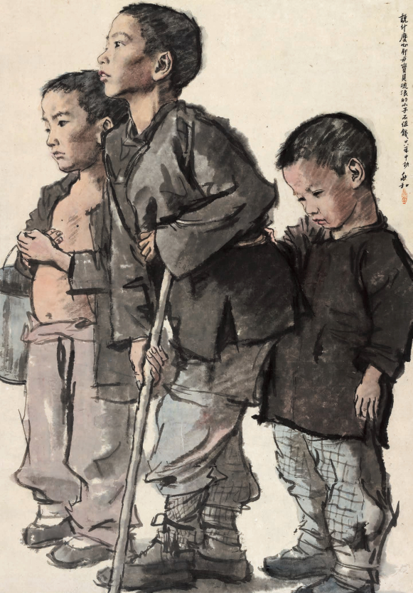 蒋兆和 《流浪的小子》 水墨设色 纸本 117cm×81.5cm 1939年