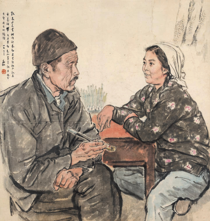 蒋兆和 《队长与支书》 水墨设色 纸本 96.6cm×91.4cm 1963年