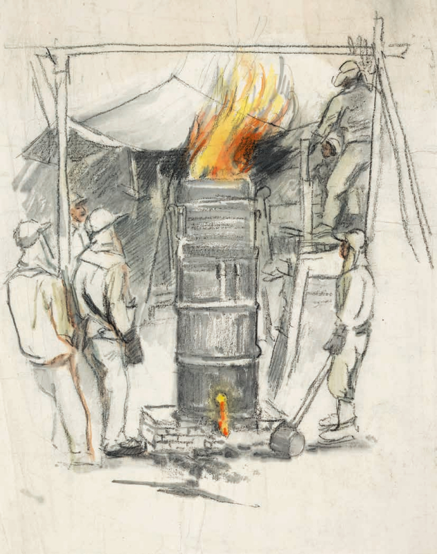 蒋兆和 《福建前线速写·冶炼》 水墨 纸本 32.8cm×25.8cm 1958年