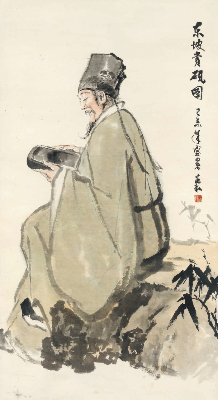 蒋兆和 《东坡赏砚图》 水墨设色 纸本 123.2cm×67.2cm 1979年
