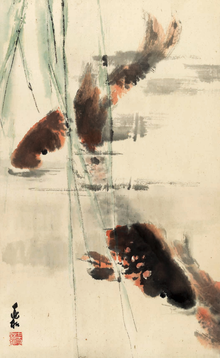 蒋兆和 《红鱼》 水墨设色 纸本 61.6cm×37.8cm 约20世纪70至80年代