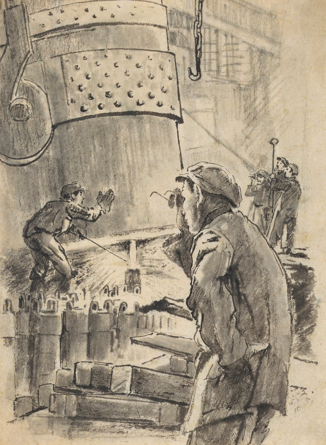 蒋兆和 《钢厂写生》 水墨 纸本 25.2cm×18.6cm 1958年