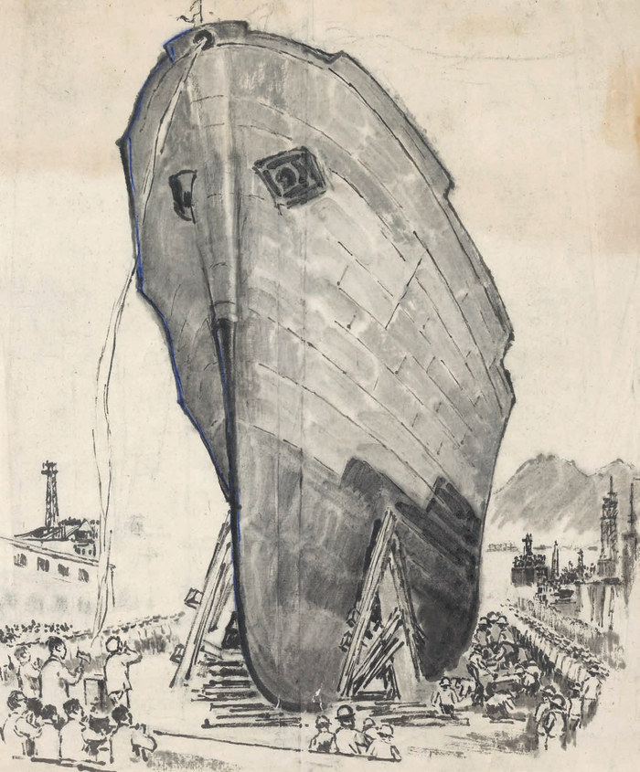 蒋兆和 《福建前线速写·入海》 水墨 纸本 30cm×24.8cm 1958年