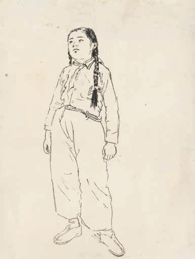 蒋兆和 《站立的少女速写》 铅笔 纸本 36.5cm×27.5cm 20世纪50至60年代
